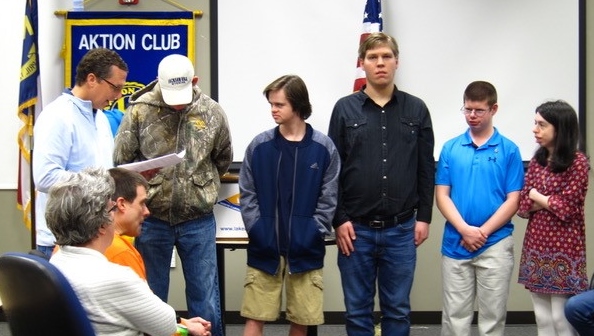 Huntersville Mayor John Aneralla, a past Kiwanis Lt. Governor, inducted the 2018 officers of the Kiwanis Aktion Club at the March meeting. The club is comprised of special needs adults, 18 years and up.