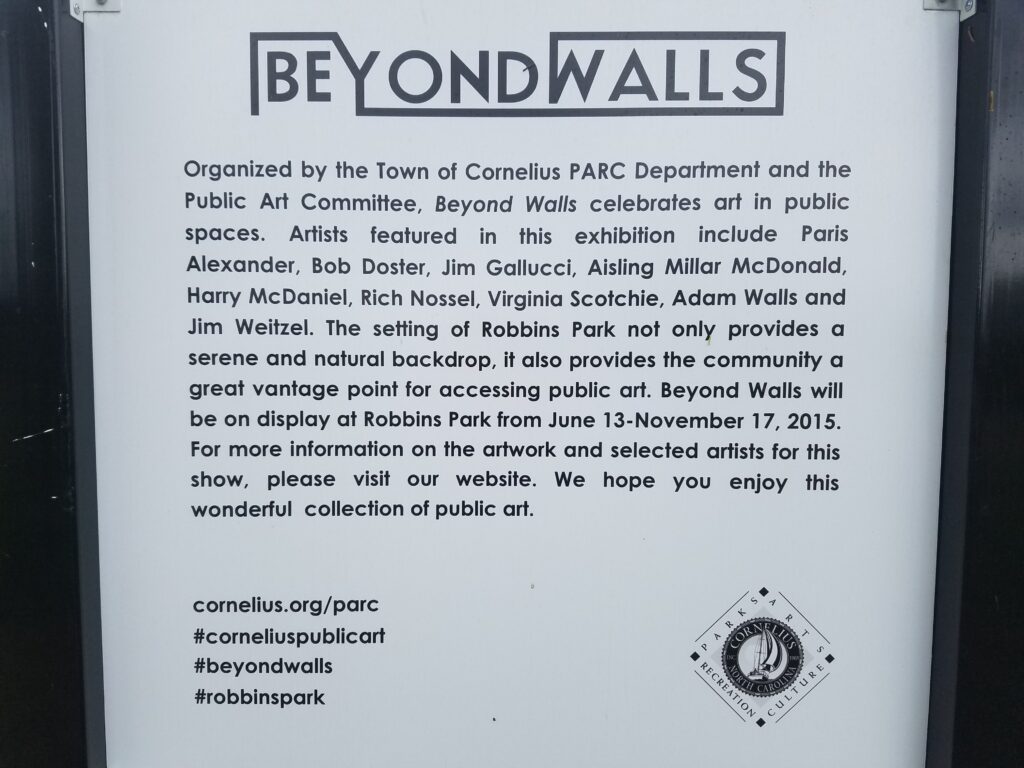 April 12. “Beyond Walls,” the town’s new open air public art exhibition, officially opens Saturday in Robbins Park with a wine reception sponsored by Cornelius Today.