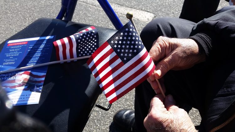 Everyone who attended received a flag. These are the hands of a WWII vet