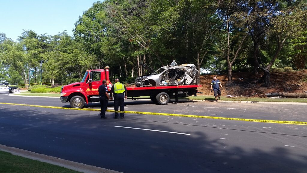 FROM CORNELIUS POLICE: “On Sunday, August 2, 2015 at around 01:27 am, a Cornelius Police Officer observed a vehicle for speeding in the 19000 block of West Catawba Avenue. The officer attempted a traffic stop near the intersection of Bethel Church Road and Jetton Road. The driver failed to stop and began to flee. As the driver approached the intersection of Jetton Road and West Catawba Avenue, the vehicle nearly struck the vehicle of a second Cornelius officer. The driver continued traveling west on Jetton Road and a brief pursuit ensued. Officers made a decision to cancel the pursuit and deactivated their emergency equipment. Officers lost sight of the vehicle but moments later located the vehicle crashed near the intersection of Jetton Road and Meta Road. The vehicle had left the roadway, struck a tree and was fully involved in fire. After the Cornelius Fire Dept. extinguished the fire, two individuals were located deceased in the vehicle. This incident is still under investigation and no further information can be released at this time. The names of the deceased will not be released until they have been positively identified and next of kin have been notified.”