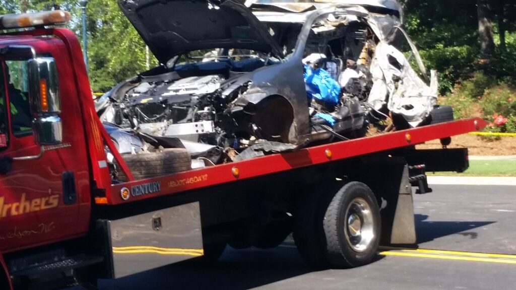 Aug. 6 UPDATE. Cornelius Police have identified the driver and the passenger in the fatal crash on Jetton early Sunday morning. The driver was Andrew Mark Krolikowski, 24, of Huntersville, and his passenger Jason Ray Monroe, also 24, of Charlotte. They were killed at about 1:30 Sunday morning after police gave up a pursuit that began near West Catawba and Bethel Church. Their silver car was wrecked beyond recognition, its sheet metal scattered near burned trees. At 10 am Jetton remained partially closed and a full-scale investigation was still under way. It was reopened about 11 am. Police released a statement (below) at 8:10 am. The tragedy Sunday morning occurred on the inbound lanes of Jetton between Meta and the entrance to Jetton Park. A doctor who was at the scene at 1:30 am said it was terrifying and chaotic. In 2008, two sons of race driver Doug Herbert were killed after a high-speed head-on crash a few hundred yards away on Jetton.