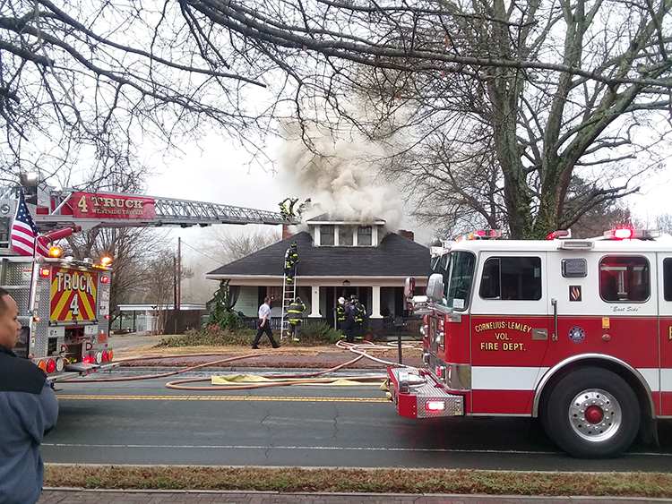 At 8:30 pm, Cornelius Fire Chief Neal Smith said the cause of the fire was still undetermined, but appeared to have started in the attic. The fire apparently roared—unbeknownst to anyone—through an enclosed space in the century-old home.