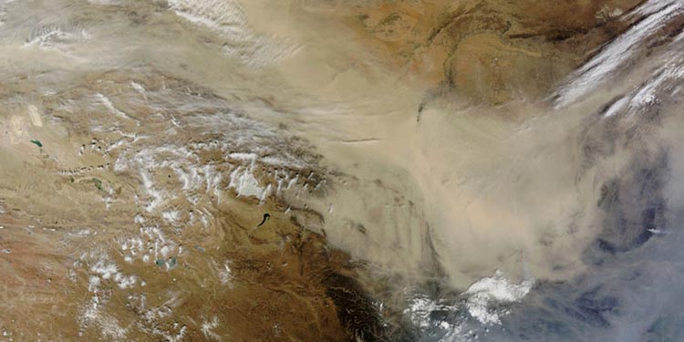 Dust storms in the Gobi Desert (as seen from space) highlight the need for China’s Great Green Wall. Credit: NASA