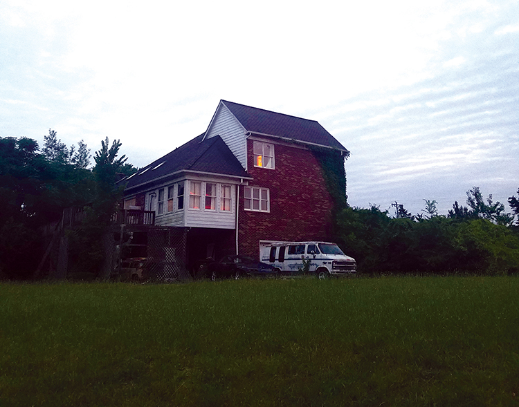 It sits like a monster in a nightmare, but one that’s gone on day and night for years. There appears to be a decade’s worth of overgrowth blocking the front door. Indeed, the front walk stops far away from the front door, obscured by bushes only a chainsaw can tackle. There are broken windows, a rusted Studebaker, a decrepit boat and boarded-up doors.