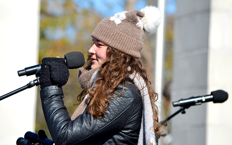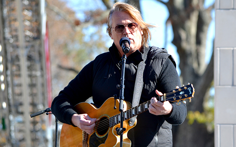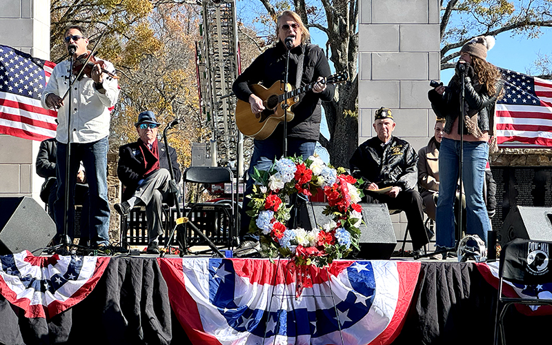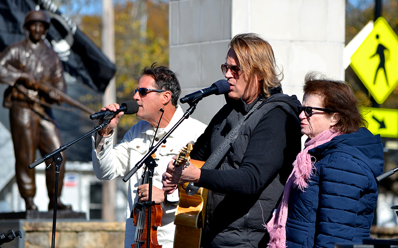 Randy Wally from American Legion Post 86 served as master of ceremonies at Rotary Plaza. The event featured performances by the Hough High School choir and U.S. Army veteran Rockie Lynne. Among the songs Lynne’s trio performed was a special tribute to Vietnam veterans, who surrounded the stage while the band played “We want to thank you.”
