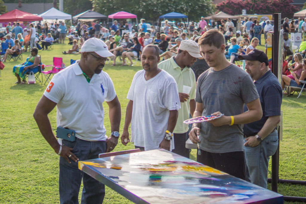 - Cornelius based fine artist, Justin Christenbery was painting live and holding a silent auction to support the Splash Park at Smithville Park.