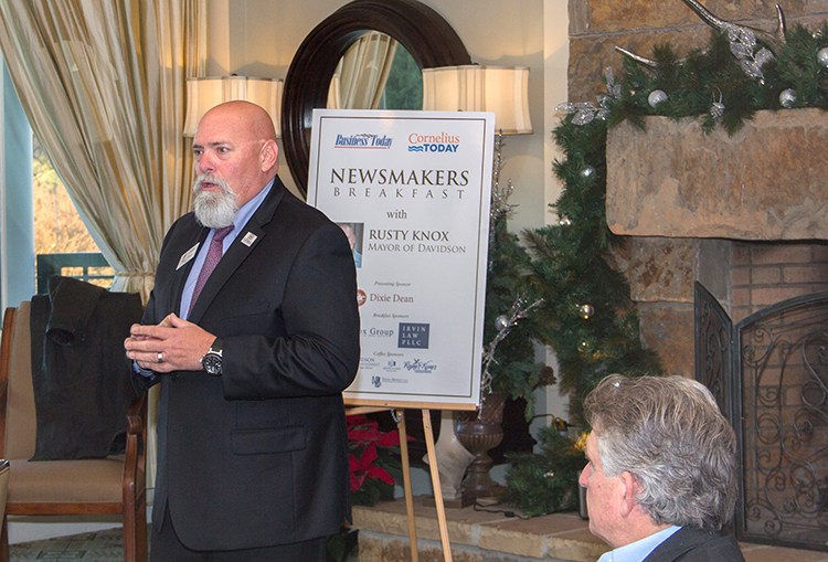 Knox said during the breakfast he was looking forward to establishing relationships and working with the new board of commissioners in Davidson, as well as Cornelius Mayor Woody Washam, Huntersville Mayor John Aneralla and Mooresville Mayor Miles Atkins.