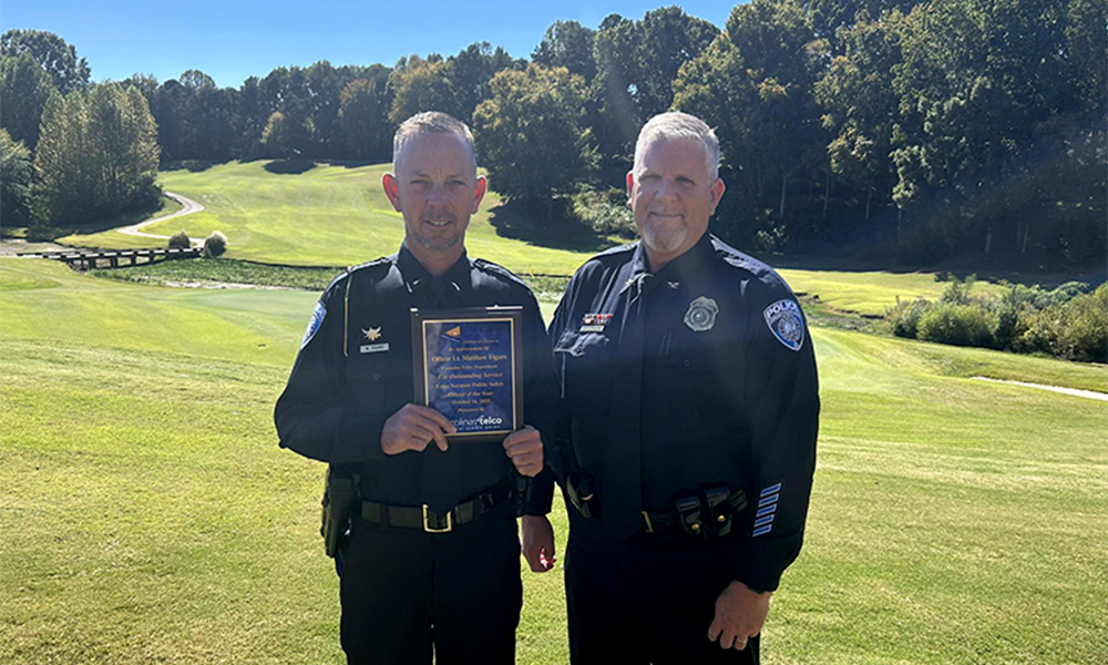 Cornelius Mayor Woody Washam and Police Chief David Baucom presented the Policeman of the Year award to Lieutenant Matthew Figaro. Figaro joined the Cornelius Police Department in 2009, served as a detective from 2010 to 2016, and as a sergeant from 2016 to 2022.