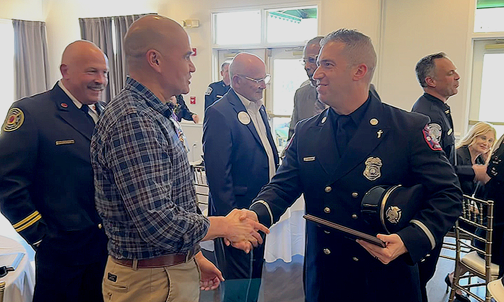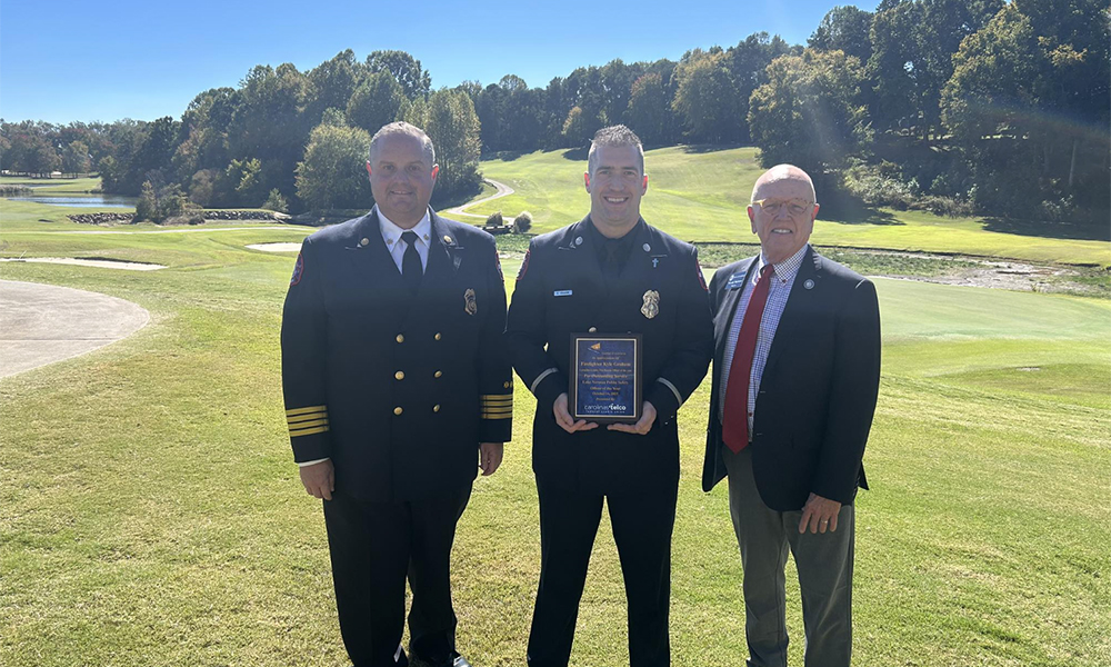 Washam also joined Cornelius Fire Department Deputy Chief Andrew Bridges to present the Firefighter of the Year award to Kyle Graham. Graham joined the department in 2019 and also serves as secretary and chaplain. He began his career as a junior firefighter in New York in 1998 before moving to North Carolina. Because the department is part-time, Graham also works full time in finance with Lowe’s Home Improvement.