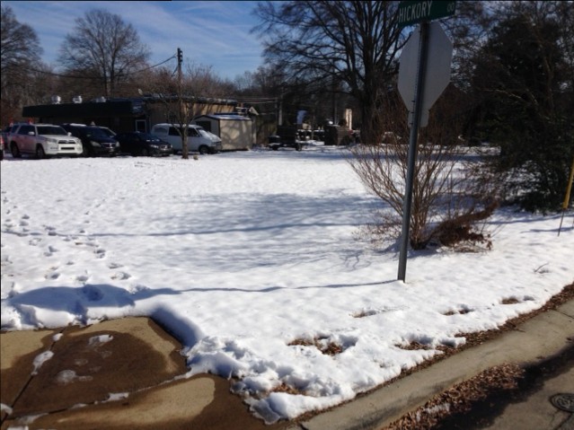 This vacant land at the corner of Hickory Street and Tryon Street would be the new home of Mama’s Pizza under the plan unveiled by owner Frank Manis. The existing restaurant, visible on the upper left, would be demolished.