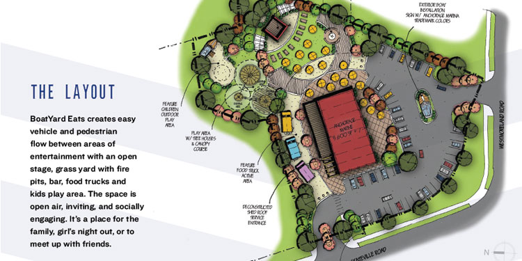 BoatYard Eats will be a restaurant based around a rotating lineup of food truck offerings. The building will be repurposed, along with upgrades to the grounds.