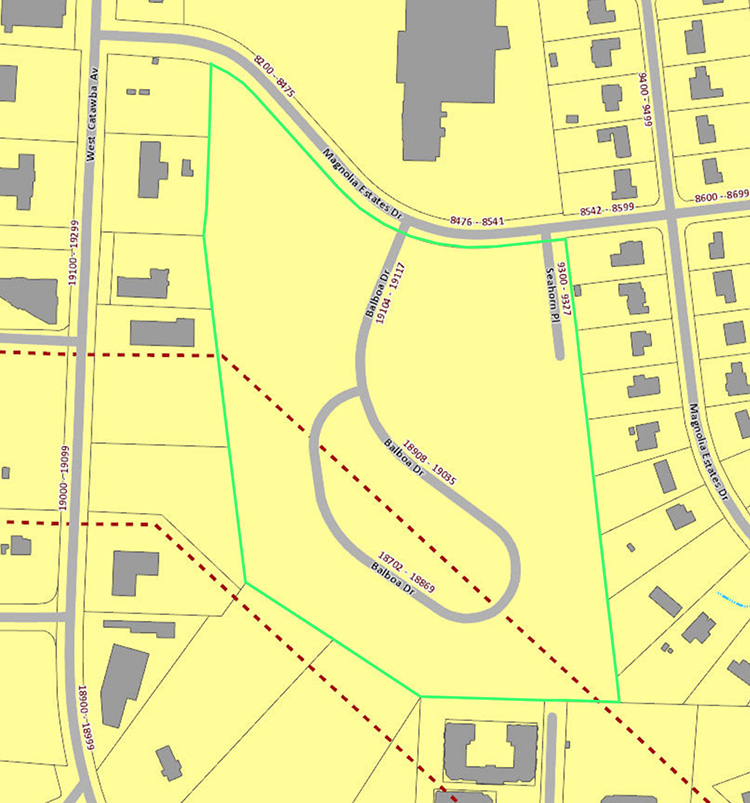 Access to the town homes will be via Magnolia Estates Drive on the north, and an extension of Nantz Road on the south. In the original proposal, the large Magnolia Estates sign at Catawba Avenue was going to be moved further down Magnolia Estates Drive but it now appears the residents would like the sign to remain where it is.