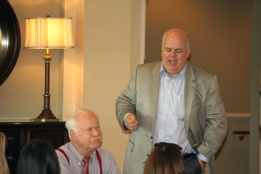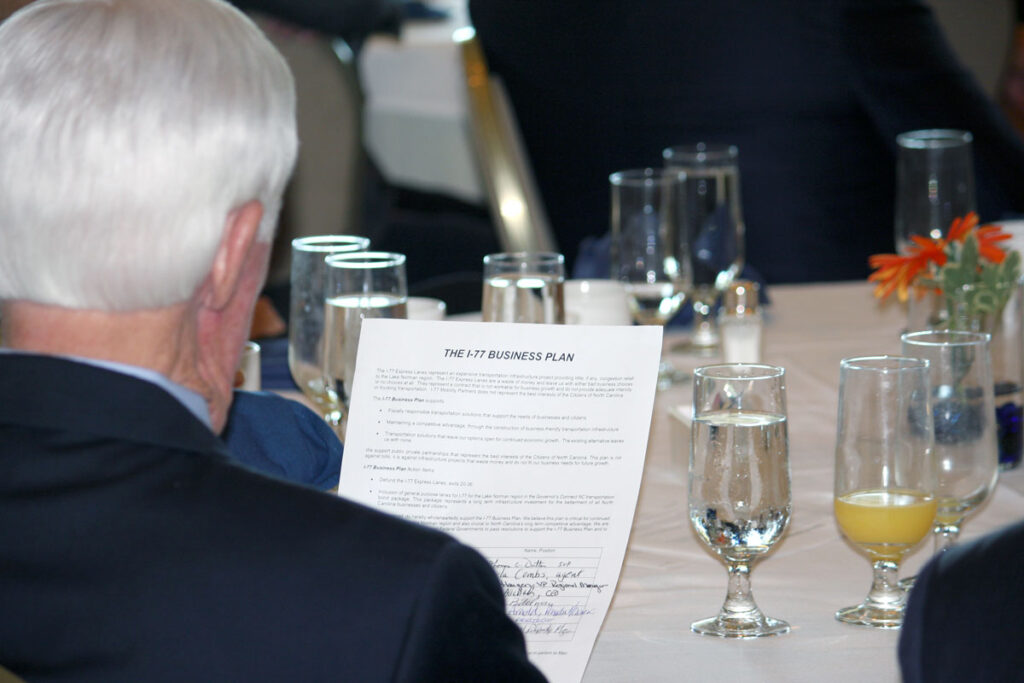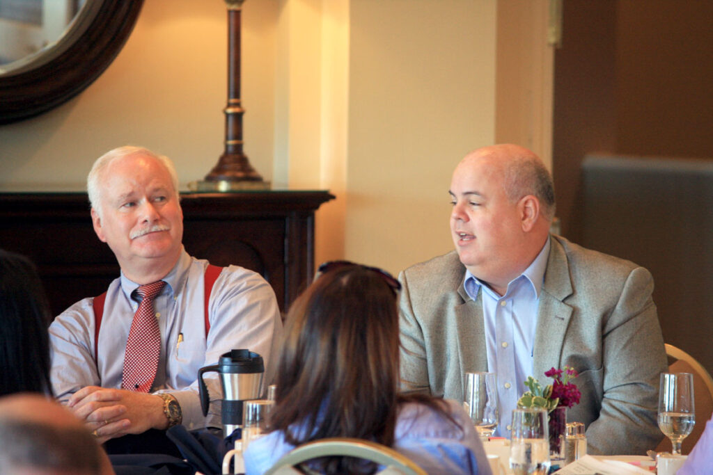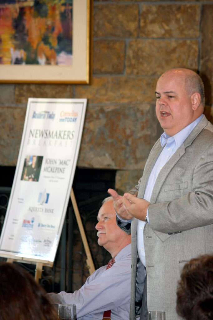 - NCDOT’s Warren Cooksey talks with a guest at the Newsmakers Breakfast
