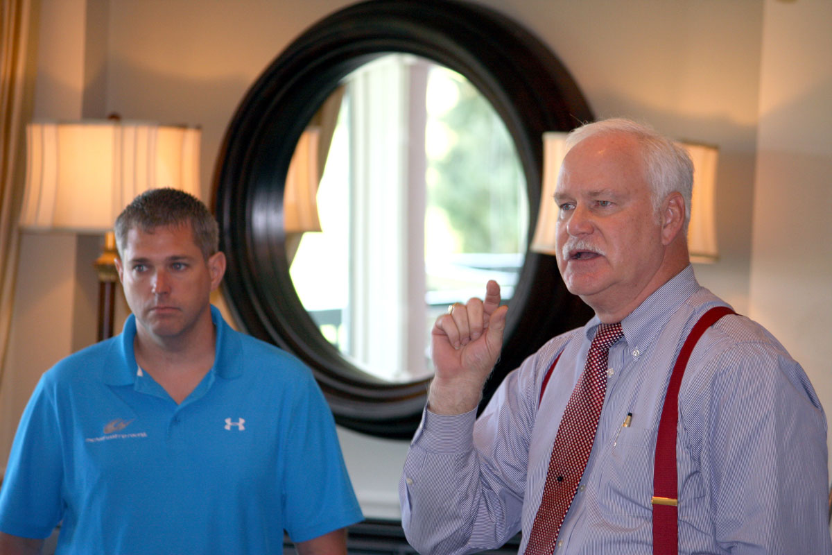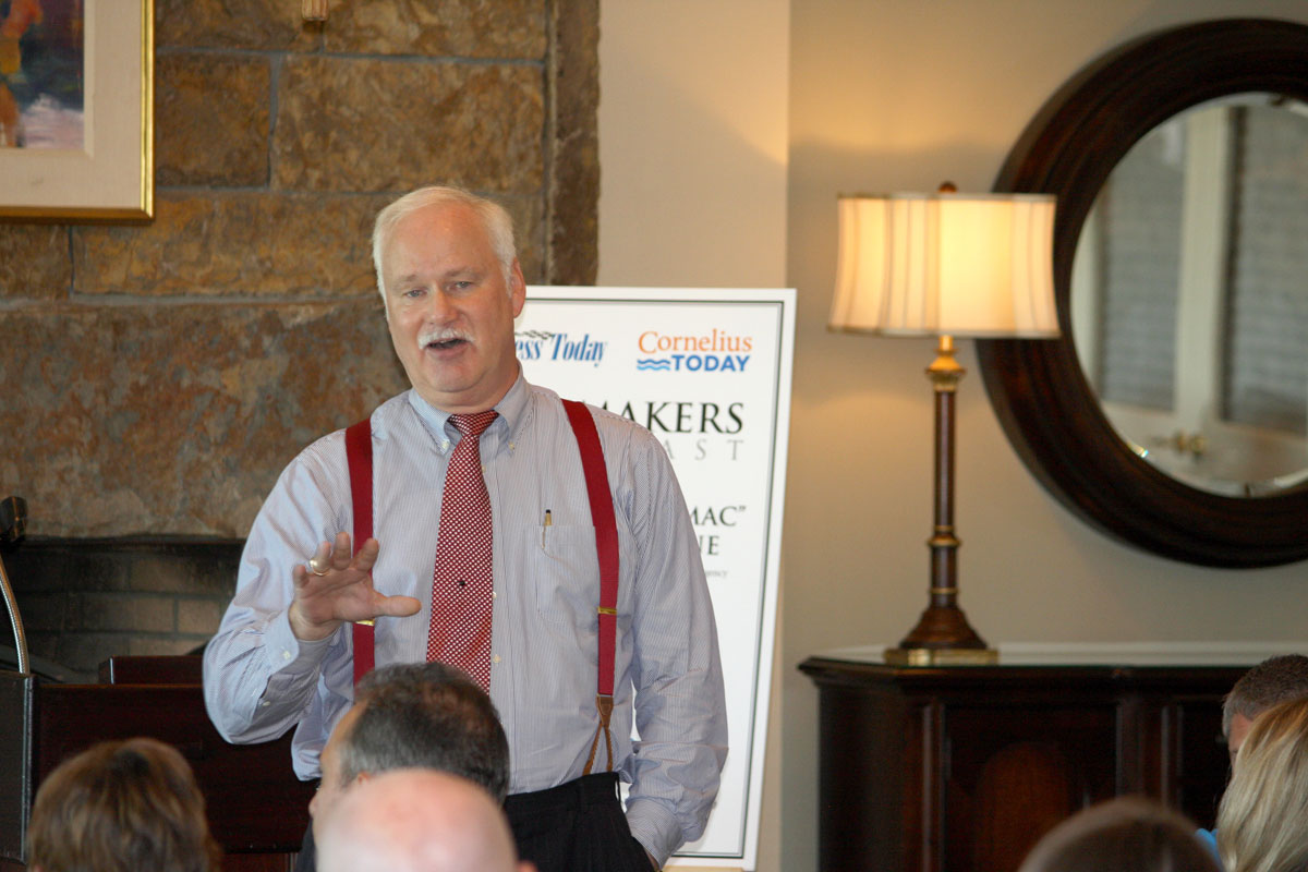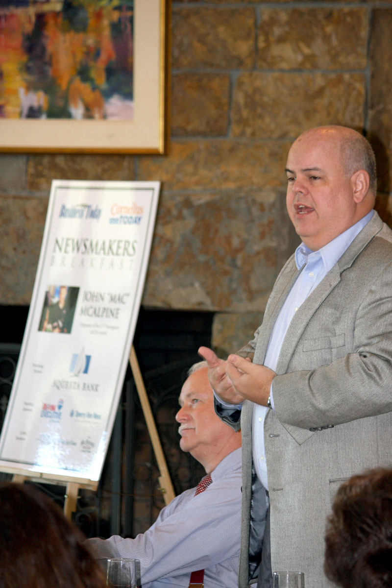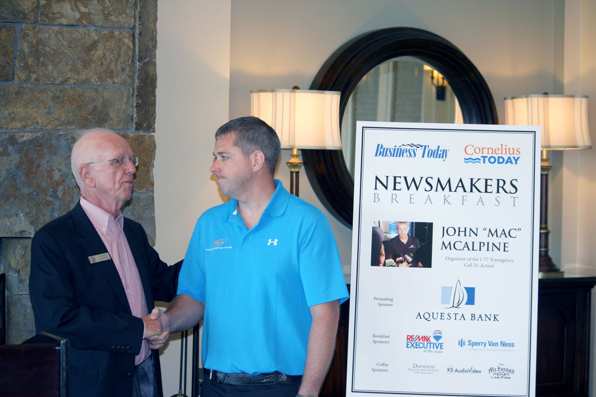 - Cornelius Mayor Pro Tem Woody Washam and Mac McAlpine exchange words after the breakfast