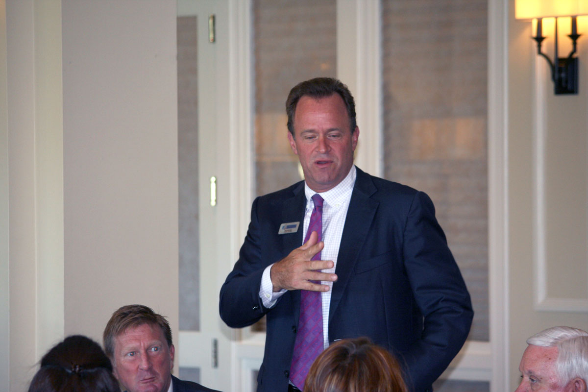 - NCDOT’s Warren Cooksey talks with a guest at the Newsmakers Breakfast