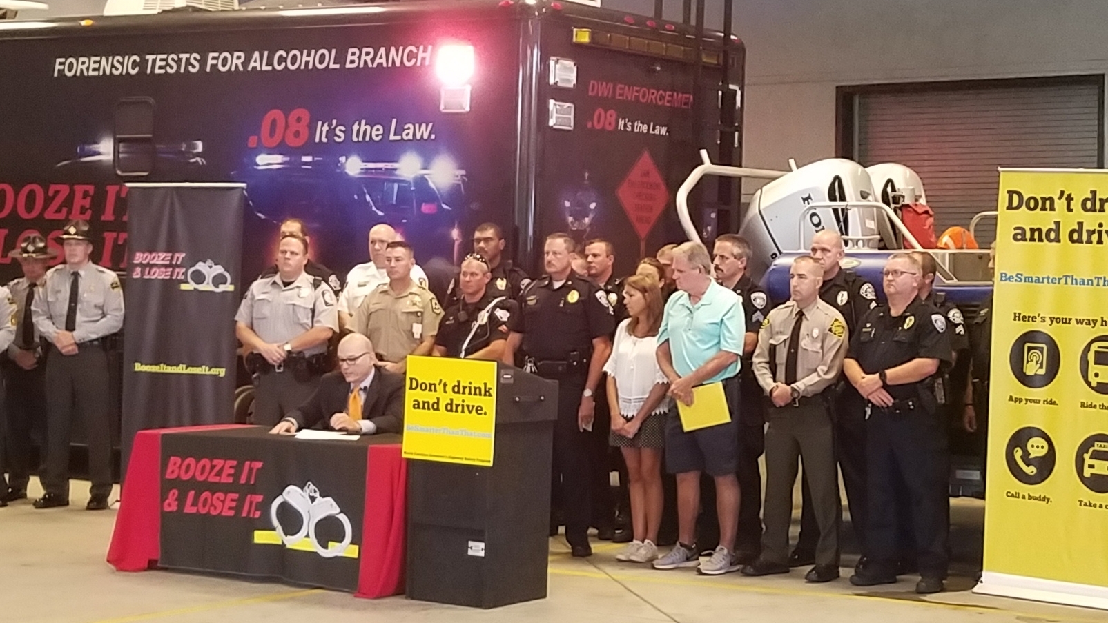 There will be stepped-up patrols and DWI checkpoints throughout the state during the Labor Day holiday. More than two dozen state and local police officers turned out for a press conference at the now-closed Michael Waltrip Raceworld. In the background was the town’s new police boat.