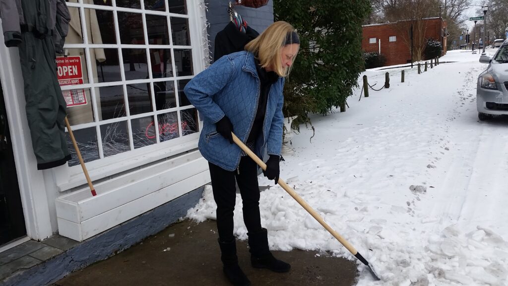 - Lorraine Smith, cleaning the sidewalk in front Brand Name Consignment