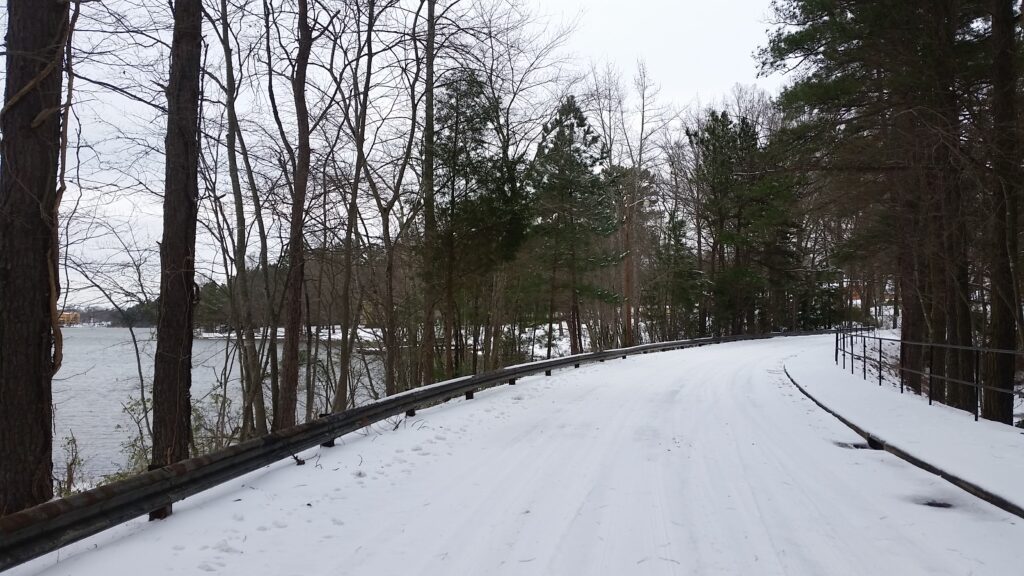 Meanwhile eight or nine Public Works employees were out all weekend working the roads with sand, brine and plows or blades—neither of the latter being terribly effective on ice.