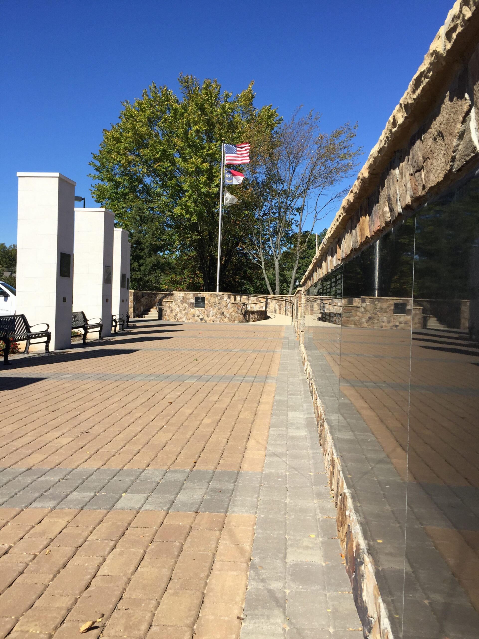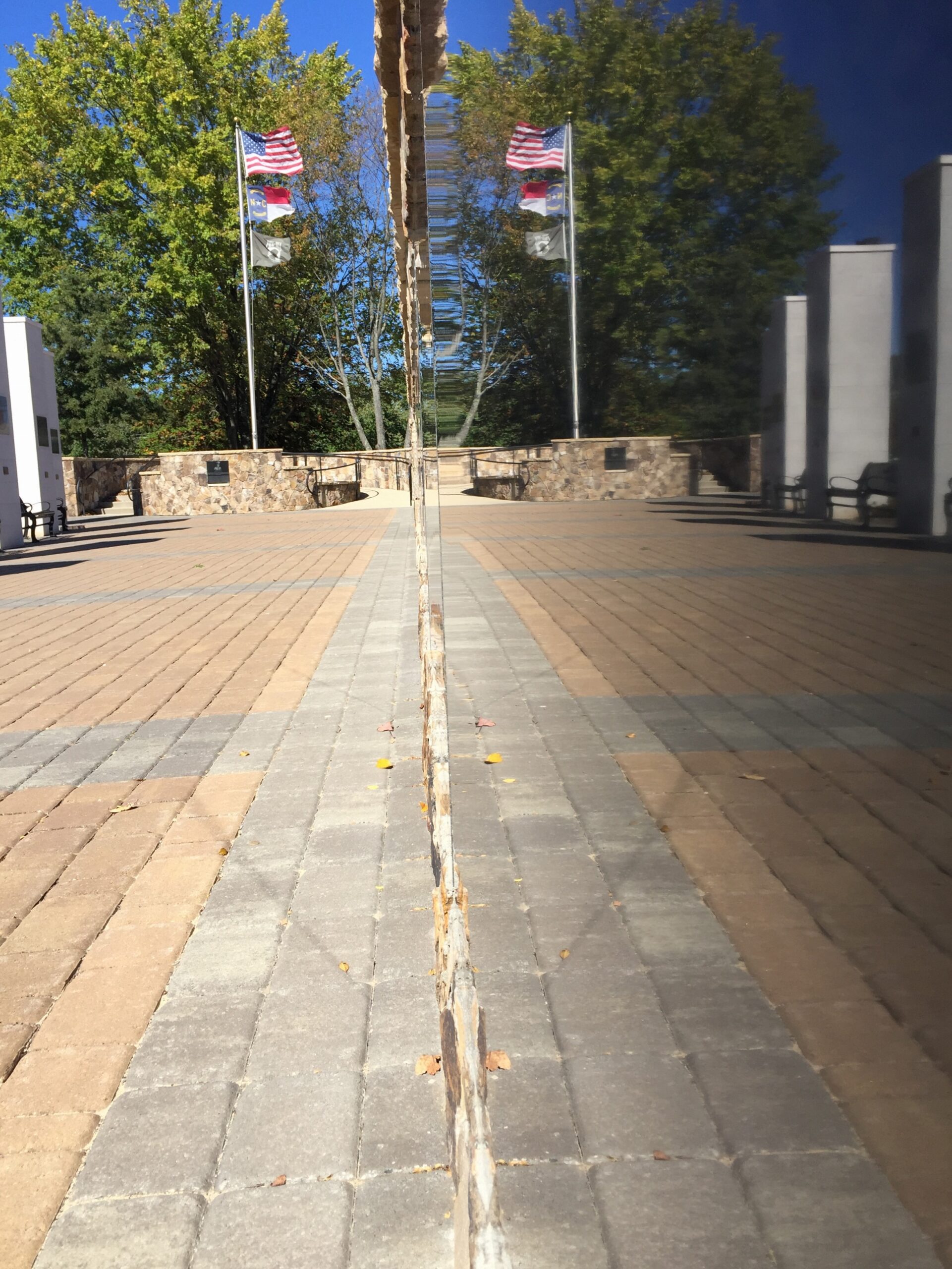 “It was a gorgeous day, and I felt compelled to walk to the memorial. As I knelt beside the wall of veteran’s names, I saw the reflection of the flag on the wall and captured this photo. Hope you enjoy! God bless America, our veterans, and those who currently serve our country!”
