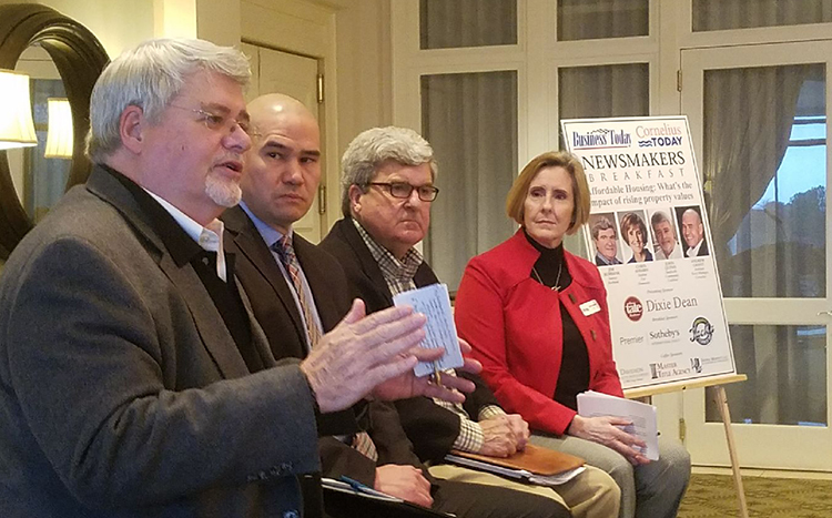 The other two panelists, Jim Burbank of the Charlotte-based home building company Saussy Burbank and Cornelius Assistant Town Manager Andrew Grant, echoed the premise that affordable—or workforce—housing is an important topic that needs to be addressed by both public and private sectors.
